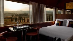 The real innovation is in the vision: “La Dolce Vita” is not just a travel experience; it is an immersive narrative. The design of the carriages – curated by Dimorestudio – recalls the refined atmospheres of the 1960s, while each route offers cuisine inspired by the region, prepared by starred chefs. The slow, sustainable, sensory journey is transformed into a continuous celebration of Italian living.